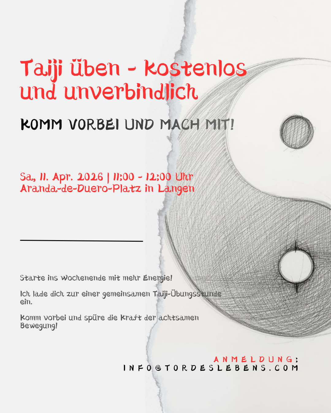 Ich lade dich zur einer gemeinsamen Taiji-Übungsstunde ein.